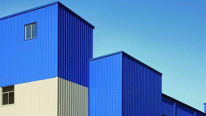 蕪湖美智空調設備位于蕪湖市經(jīng)濟開發(fā)區(qū),建成于2010年。是一家生產(chǎn)空調、冰箱的家電企業(yè)。屋面采用寶鋼鍍鋁鋅光板制造,牌號為S350GD+AZ,鋁鋅重量為165克/平方米。墻面采用寶鋼鍍鋁鋅氟碳彩涂鋼板,顏色為白灰、海藍,鋁鋅層重量150克/平方米,牌號TS300GD+AZ。